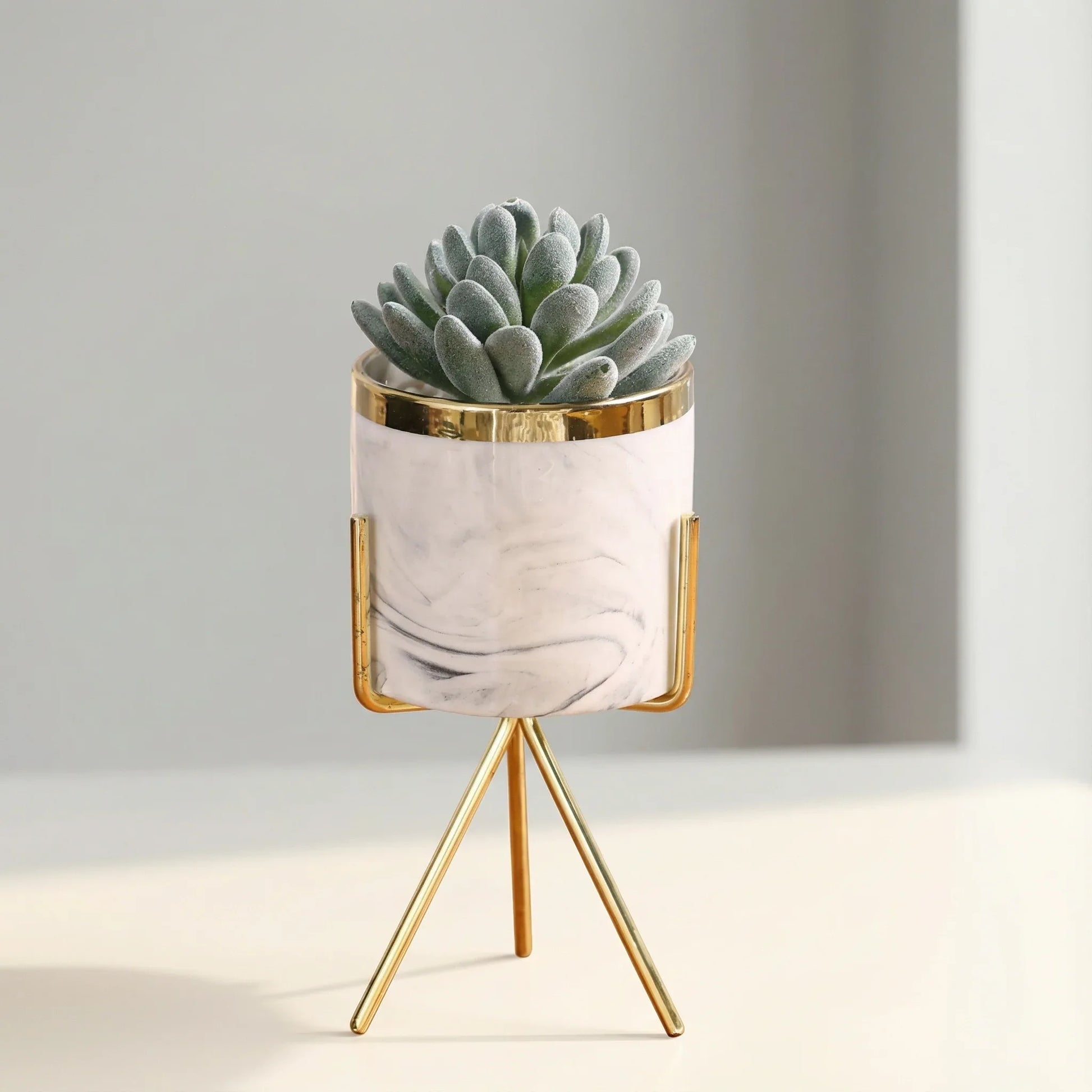 without ongoing expenses. Complete Setup : Includes succulent, ceramic pot, and metal stand for immediate display.