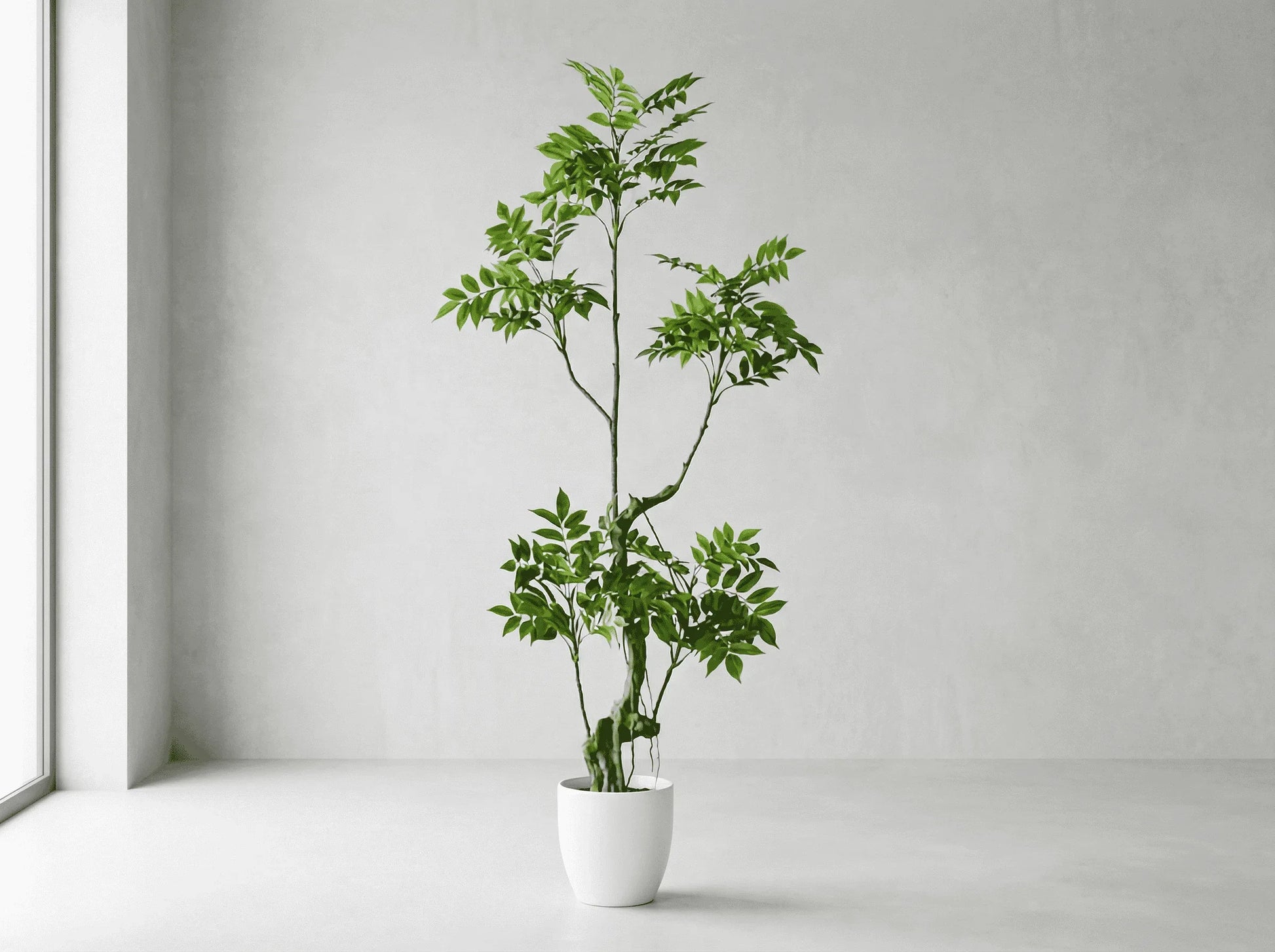 The Artificial Sumac Tree offers a striking blend of elegance and natural charm with its layered, delicate leaves and graceful branching.